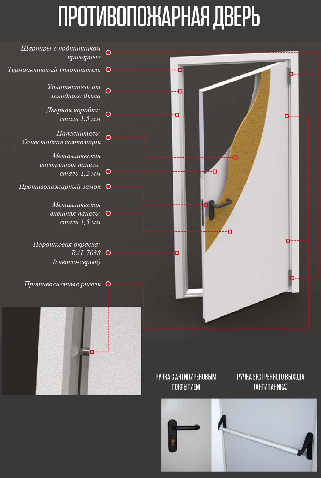 Такие двери устанавливаются в жилых домах, офисных зданиях, торговых центрах, производственных и складских помещениях — везде, где важна безопасность людей и сохранность имущества.